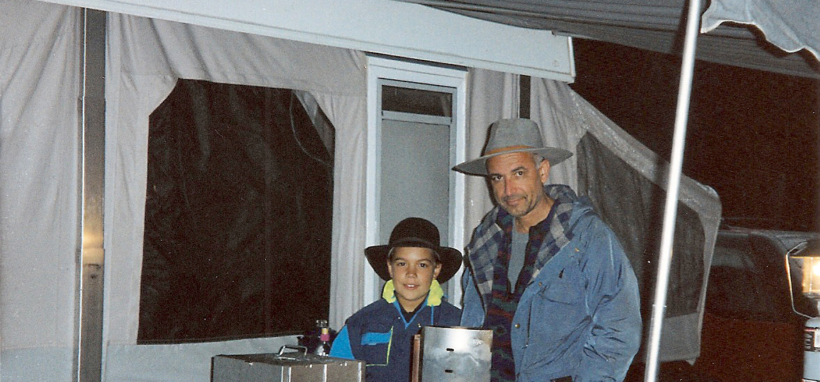 Above: July 1997. REI 60/40 Parka. We were camping above Mammoth Lakes in the Sierras. Later that day it would snow — contrary to what most backpackers will tell you about weather in the Sierras. Notice I am wearing 3 layers – base, fleece insulating layer, and the rain shell.