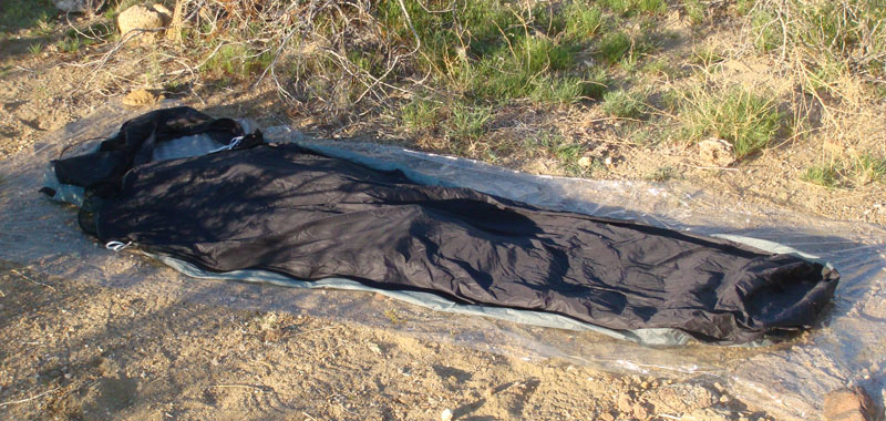 Poncho/tarps are not large shelters. Site selection and set-up become essential skills. Also, in wind-driven rain, your sleeping bag will get wet. The only solution for this is to use a water resistant or “waterproof breathable” bivy. Essentially it is a sack you put your sleeping bag or quilt inside to keep the spray off your sleep system. Even though the backpacker is not exerting himself, as when hiking, bivys are prone to condensation from water vapor generated during sleep. Same problem as rain gear. But with experience the skilled backpacker can minimize this problem to some degree.