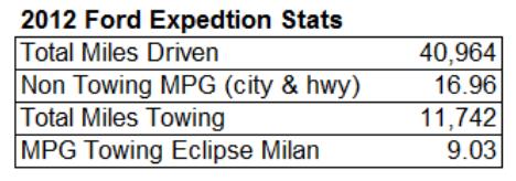 I really was more interested in a pickup truck than another SUV, but we got a screaming deal on 2012 Expedition due to Joyce’s advanced negotiating skills. The vehicle had been sitting on the dealer’s lot for a year, which means they had been paying interest on it for a year. So she got $10,000 off the sticker price. But would this new Expedition be able to tow our new trailer (see my 3 part series on How Much Trailer Can You Tow)? The answer was yes.