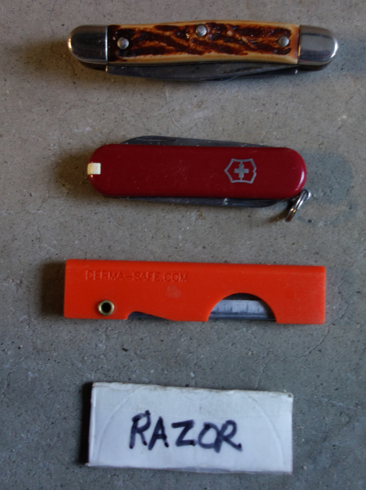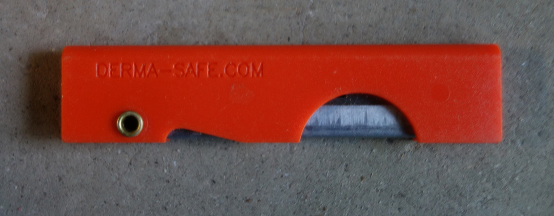 - Derma-Safe Knife. Used on most trips today. Weight = .28 ounces (8 grams).