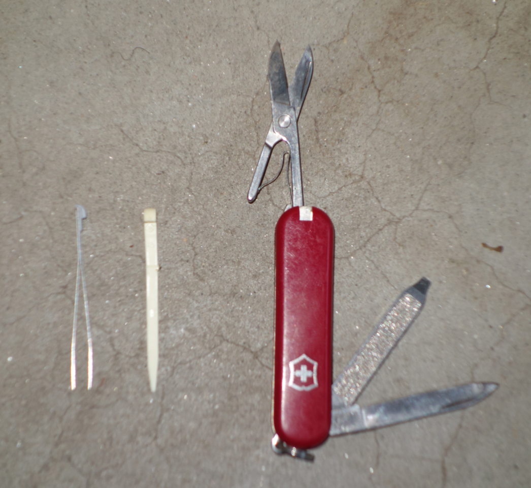 The Victronix Classic (second from top) has 1 blade, a file/screw driver, scissors, tweezers, and a toothpick.