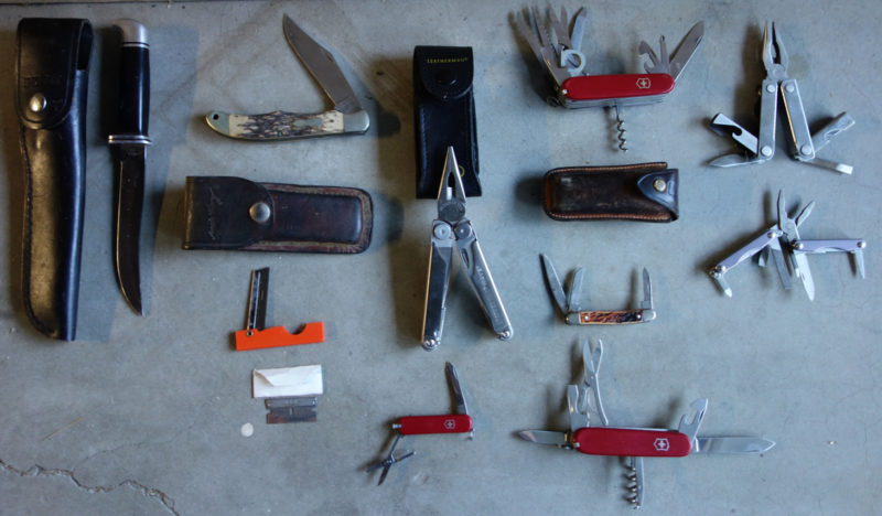 Over the years I have purchased three knives. The rest were given to me as gifts. I guess those who don’t backpack think a multi-tool is essential to backpacking. I often see people post about their need for a significant knife in the back country. We really don’t need a Bowie knife or an axe to survive. Maybe it is a macho thing… I don’t see women posting about their need for a big knife.