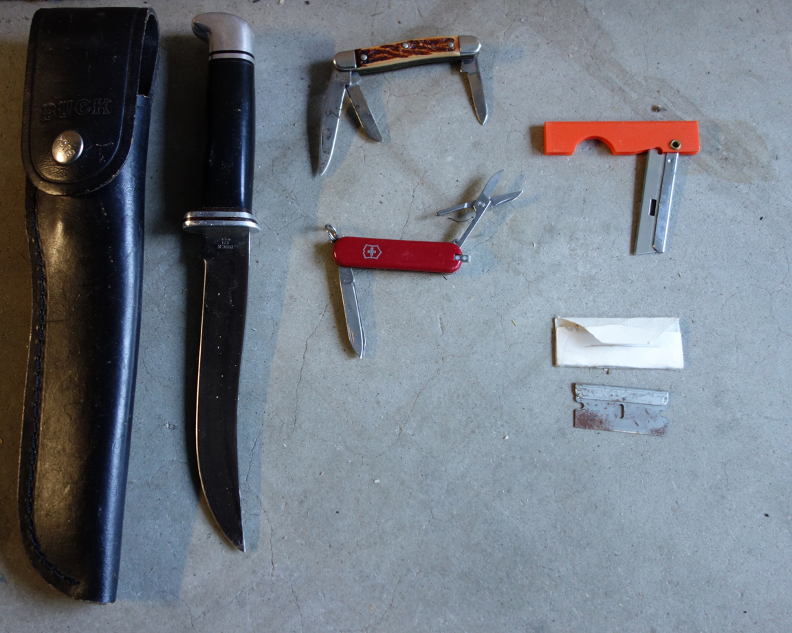 Above are the only knives I have ever taken backpacking. Left to right, top to bottom