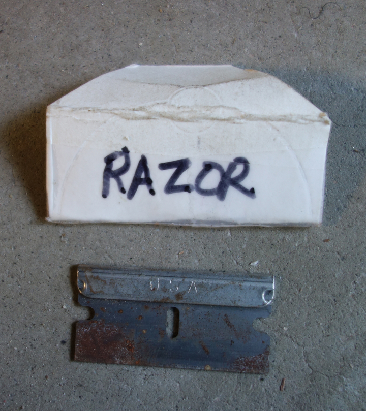 - A razor blade with cardboard sheath. Sometimes I just take this. I got the idea from Mike Clelland on Backpackinglight.com. Weight = .11 ounces (3 grams).