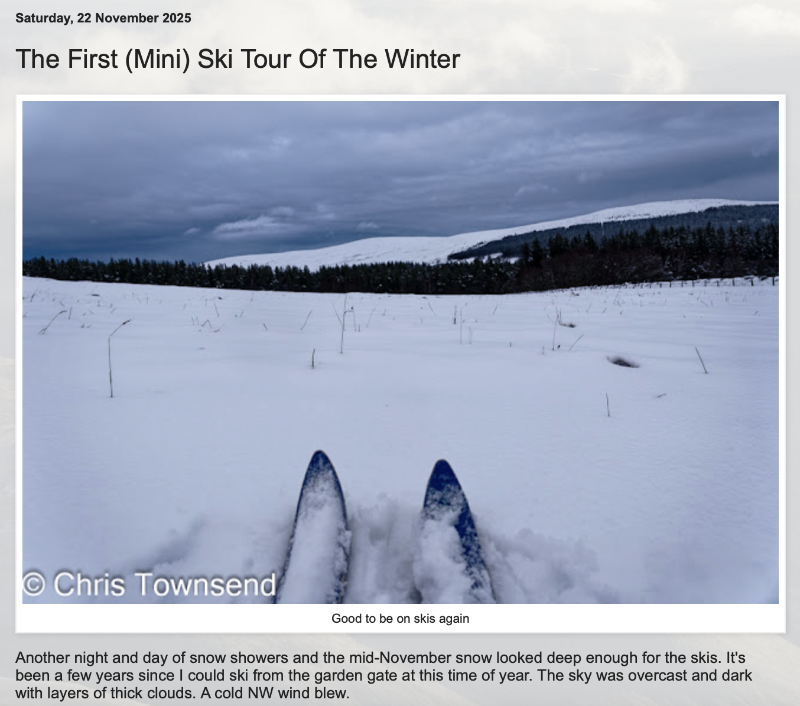 The third person I wrote about in 2013 is Chris Townsend, who is a year older than me. Chris is still spending most of his time outdoors. His latest post is about a cross country ski trip that originated from his house in Scotland. Click the picture below to read it.