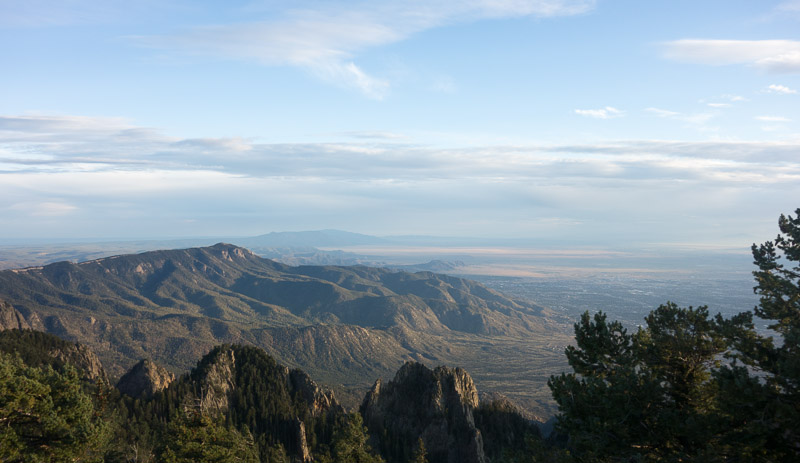 After a great meal I headed to my hotel for a little Internet research. I really didn’t want to stray too far from Albuquerque, as driving would just eat up potential hiking time. Besides, I live in a desert, so summer hiking in the desert didn’t have any great appeal — I can do that at home.