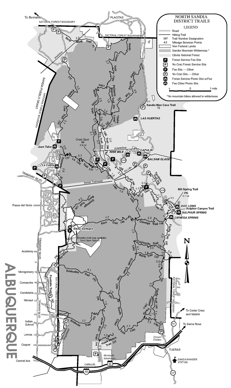 There are two designated backpacking trails in the Sandia Mountains; the 26 mile Sandia Crest Trail, which basically follows the entire ridge-line of the mountain range, held some potential. The other trail, The Foothills Trail is at the base of the mountain on the edge of the city and is open to horses and mountain bikes. Looking at the map it even appeared that parts of the trail might be in the city. Ugh. I immediately scratched that one.