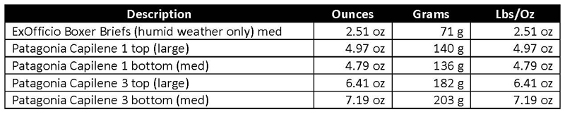 A note on the ExOfficio Boxer Briefs: I only wear these in humid weather or sometimes in extreme heat where I anticipate sweating profusely. See my article on Chaffing & Jock Itch.