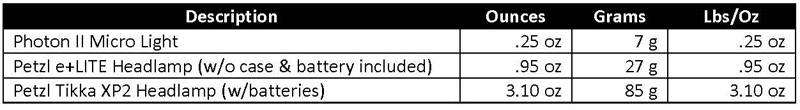I do not like to hike at night, unless it is in the desert with a bright moon to help guide the way. On most trips I only bring a small Photon II light, that I carry on a string around my neck (along with a whistle). I have had to hike a couple times in the dark with this light and it is next to useless for that purpose. But for task lighting it is good.