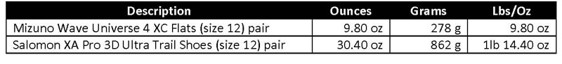 I have been hiking in trail running shoes since 2008. Actually cross country flats, which are even lighter than trail running shoes. My favorite is the Mizuno Wave 4 Universe. When I need “heavy duty” trail runners I wear Salomon XA Pro 3D Ultra Trail Running Shoes. I have several pairs of each shoe because as with all good pieces of gear, eventually they will be discontinued. For thoughts on minimal shoes, click here.
