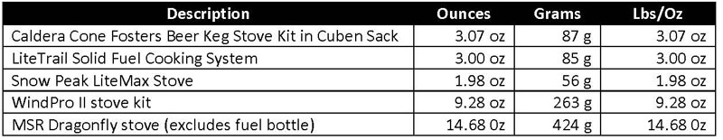 I don’t cook. I boil water and eat instant types of food. I also enjoy coffee, hot chocolate, and an occasional cup of tea. My stove systems have gotten really simple and light. Mostly I use Esbit tabs or denatured alcohol for fuel. In winter I have mostly gotten away from white gas and use a MSR WindPro II with an inverted canister. Sometimes I will still use my MSR Dragon Fly for snow melting duties, especially on longer trips. I probably bring my Caldera Cone system on 90% of my trips, which includes stove, pot, and windscreen. I have been using a LiteTrail cook system on a few trips and like it so far . Sometimes when I want a fast and easy stove, the Snow Peak LiteMax canister stove is quick, easy, convenient and light.