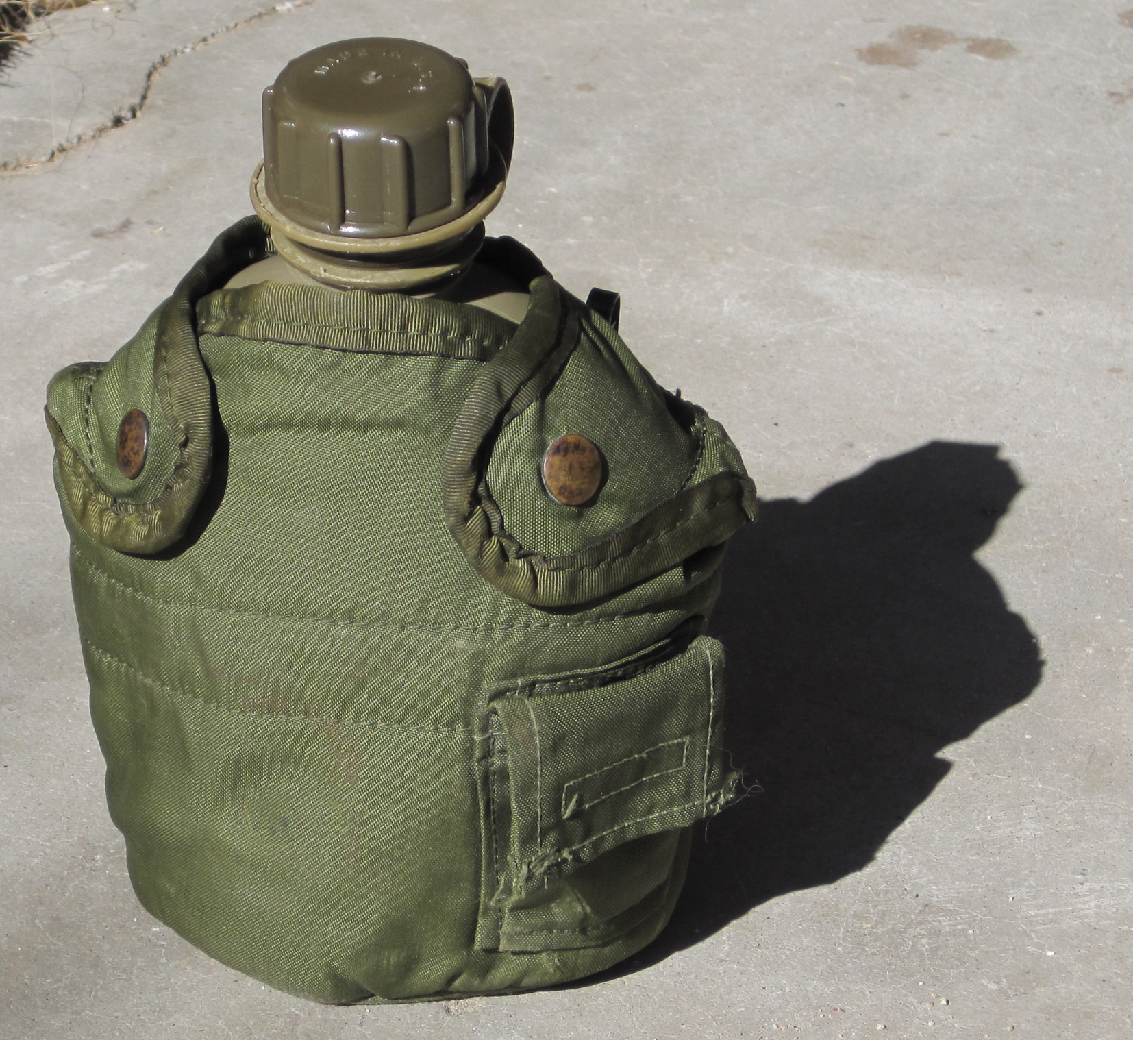 Stove, cup, and canteen fit into an insulated nylon cover that could be attached to the hip belt. There is also a little pouch that could store a bottle of iodine tablets, my main purification method until 2009. After about a month I sent the cover home.