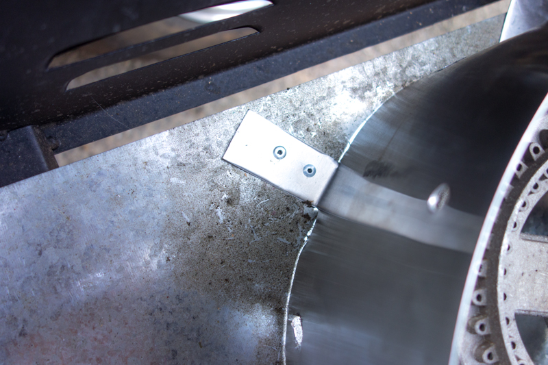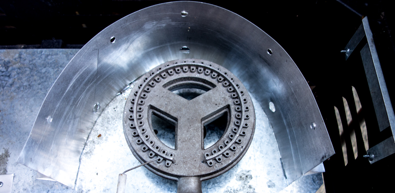 Okay, if you remember from the backpacking stove discussion earlier, simply surrounding the Pro 60’s burners would be a simple fix. Armed with some aluminum flashing, metal snips, a drill, and rivet gun I went to work.