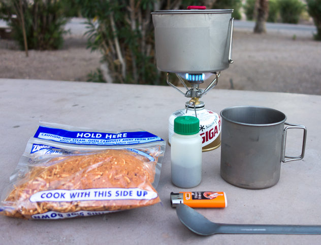 Snow Peak Giga Power backpacking stove during a bike touring trip