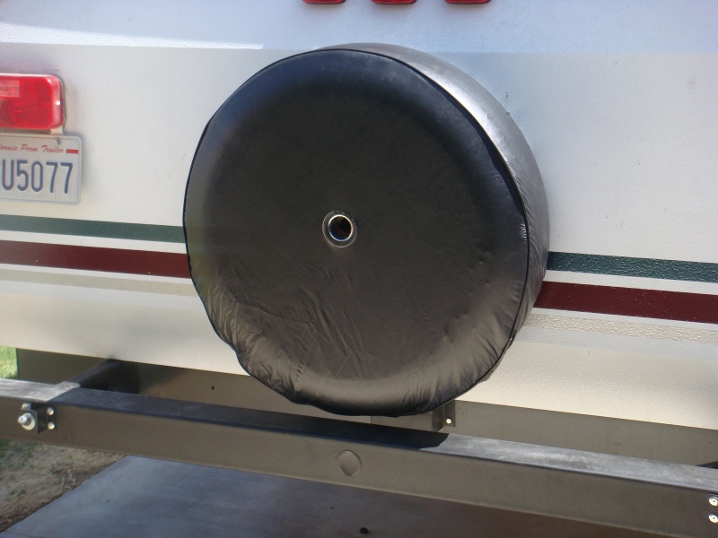 It was not possible to mount the spare tire to the body of the Milan’s rear without blocking the picture window or the tail light. It was possible to mount it on the bumper without block the tail light and not obstructing our picture window view.