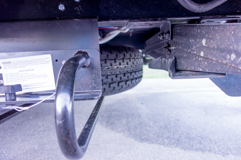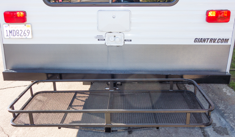 At times there are a couple items we take camping – our bikes and sometimes our inflatable boat. We could get them into the trailer and the trailer can handle the extra weight at the back. But it isn’t an easy chore and it presents the likelihood the equipment would damage the interior while in transit. So the only other option is to install a cargo carrier at the rear of the camper.