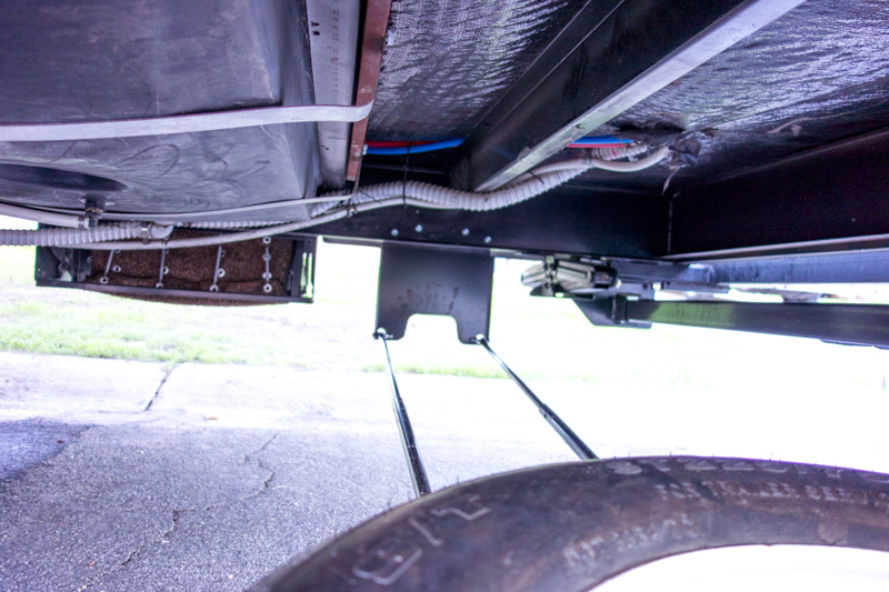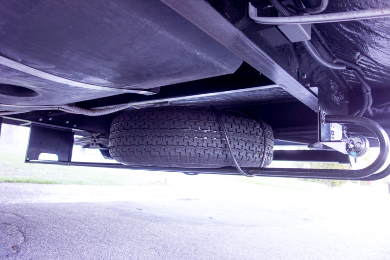 This is a nifty set-up that allows you to mount the spare under the camper, and it has a sliding bracket that makes it easy to pull it away from the trailer for easy access. There several sizes and mounting options, so if you want one be prepared to do measuring. This solved my spare problem, and during my research I also found my cargo carrier solution, which I will discuss later. It is important to note that I had to make sure both solutions we compatible with each other.