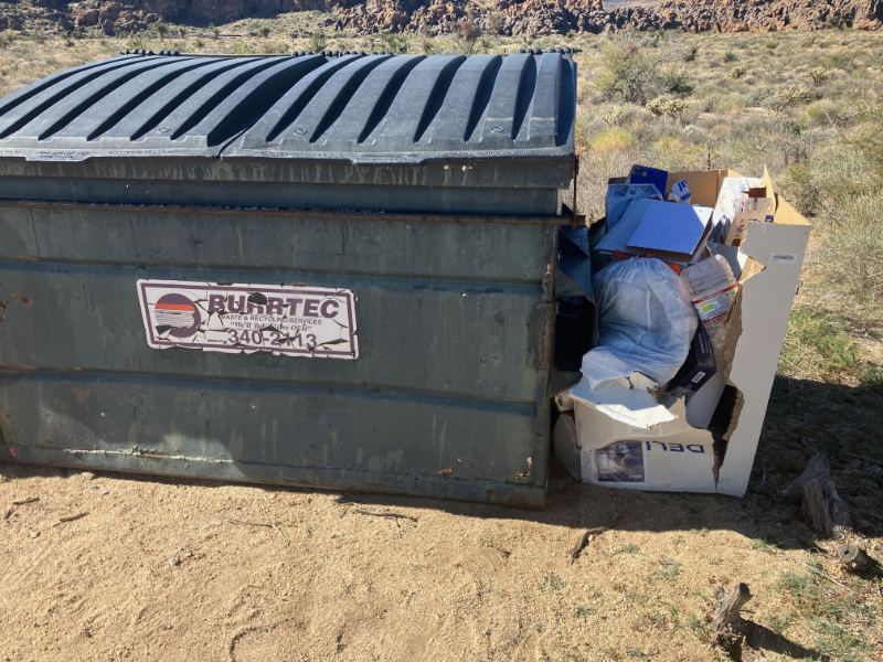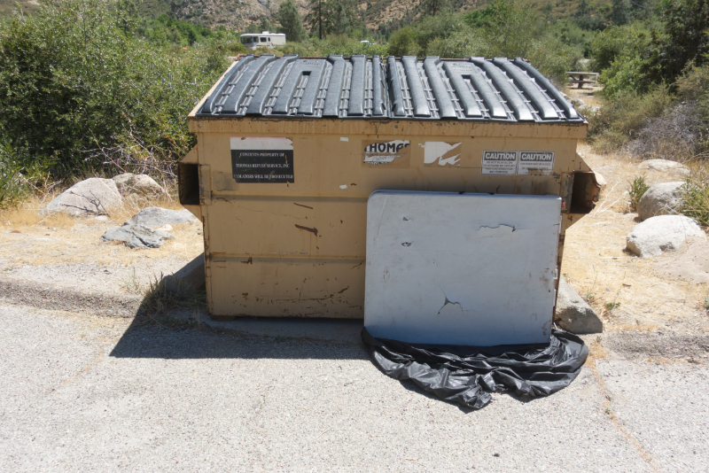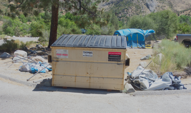 Campground bins are really for trash generated during your stay. They are not for large bulky items such broken furniture, shade canopies, inflatable rafts, broken bicycles, stoves, ice chests, etc. In addition, if you have boxes, break them down to minimize the space taken up.