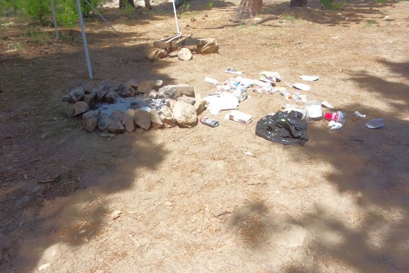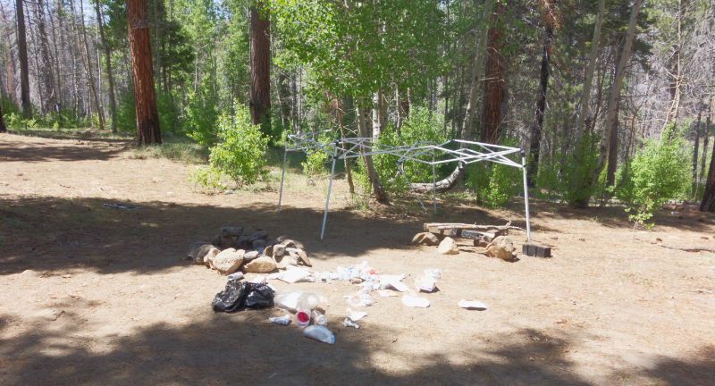 It appears all the trash was left in a plastic trash bag, which an animal quickly found. Plus the occupants decided to leave their broken shade structure. This is bear country. So ALL trash needs to be packed out. And it wasn’t just this one site. Lots of broken glass and other trash in the area.