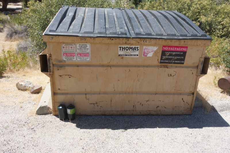 Apparently this camper knew this, as they carefully placed these two empty canisters in front of the empty trash bin.