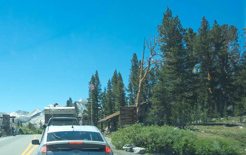 Gassing up in Lee Vining we headed up Hwy 120, also know as Tioga Road, or Tioga Pass Road. Not too much traffic and we were soon at the entrance gate, with a long line of cars in front of us. An omen.