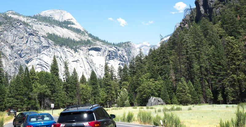 We presented our America the Beautiful Pass and got in for free. We quickly saw a sign that  said, “Road Construction Delays Up to 20 Minutes.” Must have been I rock slide, I thought. Then I started seeing the dreaded survey stakes. Obvious to me, having worked in construction, the road is being widened. Crap. Not crap for the numerous delays we would encounter, but crap they are making it faster for even more vehicles to get to the amusement park in Yosemite Valley. Now why do I call it an amusement park?