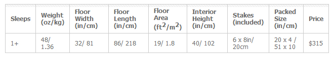 The Flashlight only weights 3.5 lbs and it its day was extremely light and roomyy for one person (it was marketed as a two person tent). Because of the sleeves it was very stable in winds.