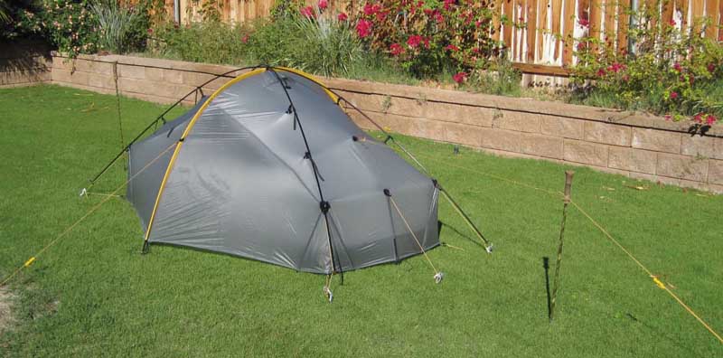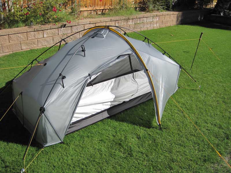Above is the Scarp 1 without the crossing poles, and side guy lines attached to the single hoop pole.