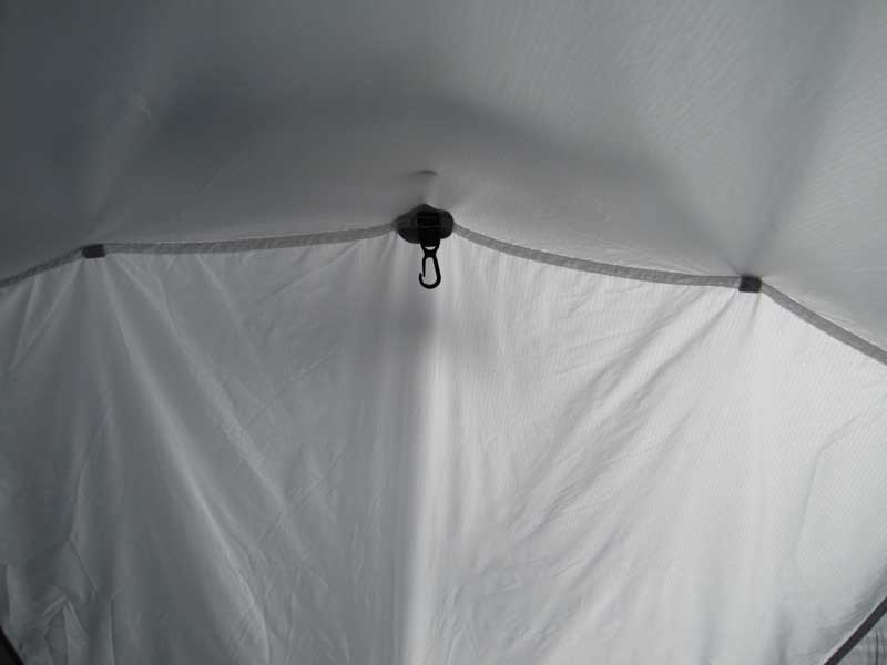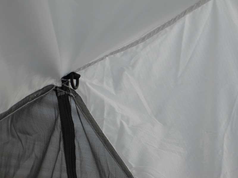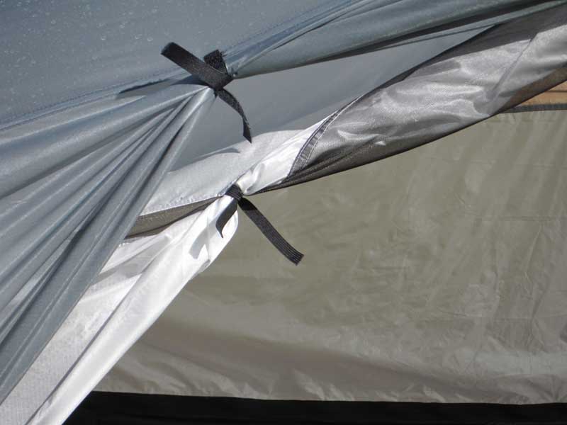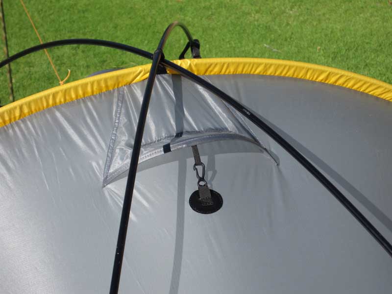 Shown are the crossing poles and one of the two vents at the top. Vents can be adjusted from inside, or closed entirely with Velcro.