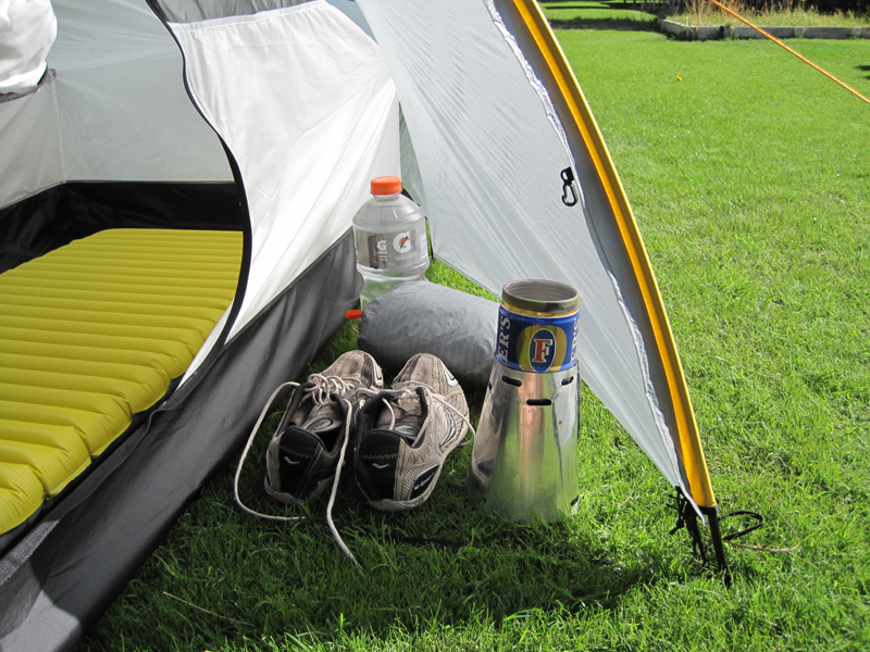 Some stuff in the vestibule. That is a 64oz Gatoraide bottle, a stuff sack, XC flats and a Caldera-F cone.