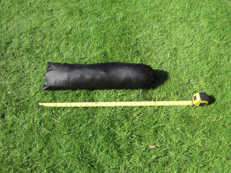Everything stuffed into the sack. This includes the optional cross over poles, 2 extra stakes and two extra guy lines. Total weight after seam sealing is 4 lbs, O oz.