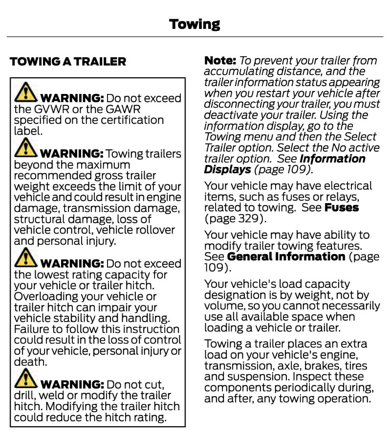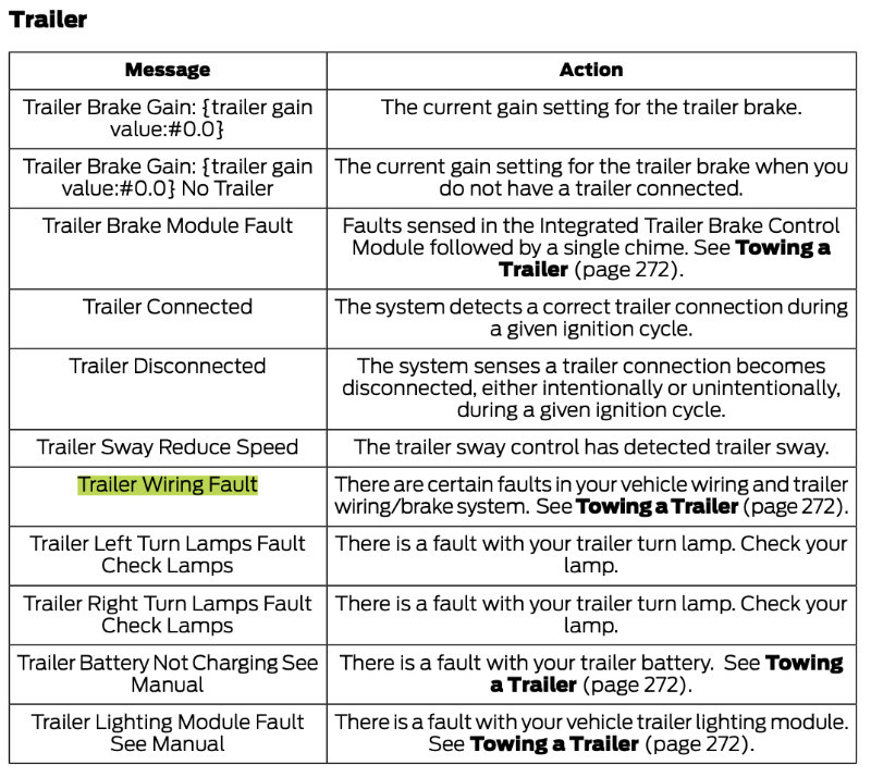 Page 136 tells me “There are certain faults in your vehicle wiring and trailer wiring/brake system. See Towing a Trailer (page 272).” Page 272 doesn’t sound promising and it isn’t.