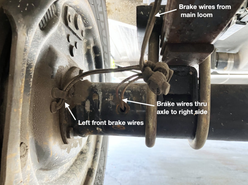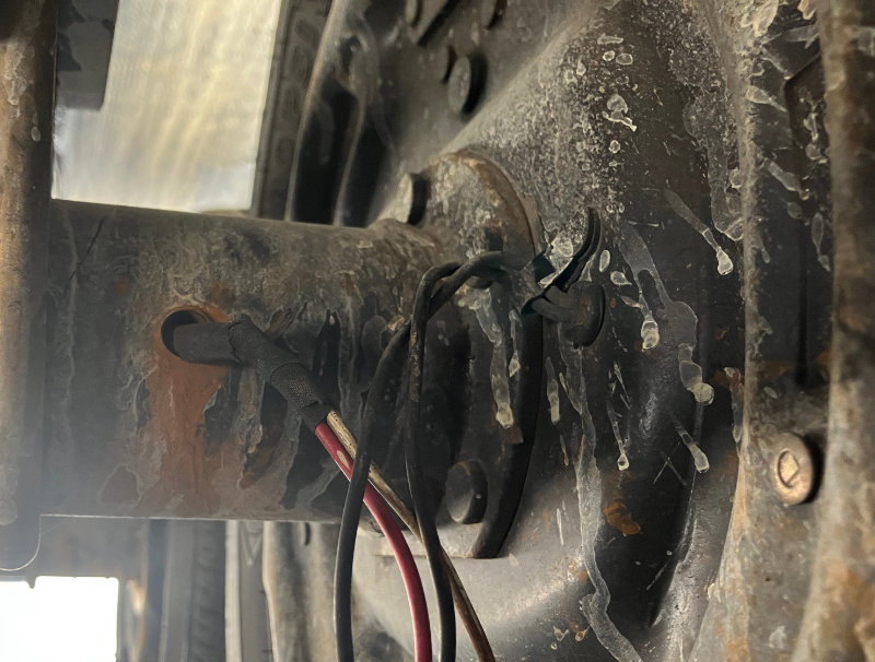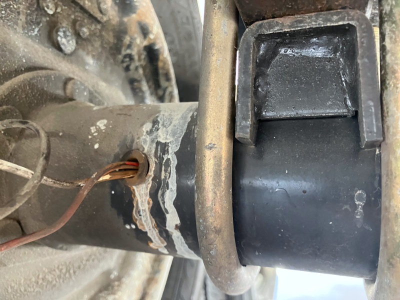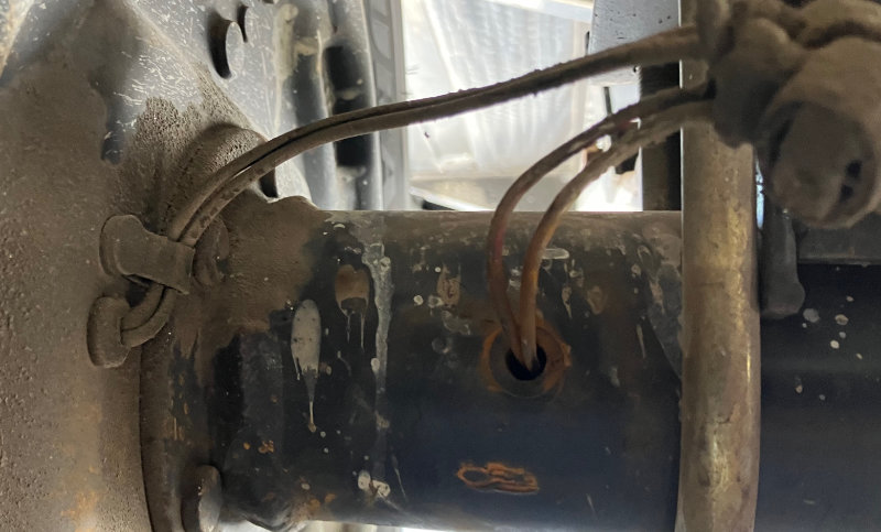 What I found was on the other side of the axle where the wires come back out of the axle, the grommet was missing. The right side grommets on both axles were missing. They had probably disintegrated over time especially given our harsh desert environment.