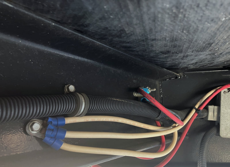 I’m looking for anything that is out of place or not normal. Has the wiring snagged on something and been pulled from its original location? Are there any loose or disconnected wires? Have any wires been rubbing on something to cause damage to the insulation. Are ground wires securely connected to the frame and free of corrosion?