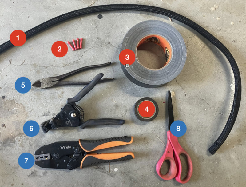 - Gorilla Tape to secure the wire looms to each axle