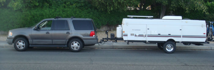 I admit that since November of 2005 when we purchased our 2006 Fleetwood Niagara Folding Tent Trailer, we have not been in compliance with the law. I plead ignorance of the law. This was not an issue with our 1992 Starcraft Meteorite, since I could see over the camper and behind the trailer. Not so with the Fleetwood.