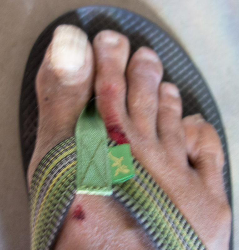 When modern flip-flops wear out, it is the straps or strap connecting point that usually fail, leaving you with a now useless foot bed that could still go on for hundreds of miles had the strap not failed. Last week I noticed my Reef brand flip-flops were about to expire. Strap failure. Damn. Good news is that Nicole, my daughter, had bought me a pair of Chaco flip-flops last Christmas.