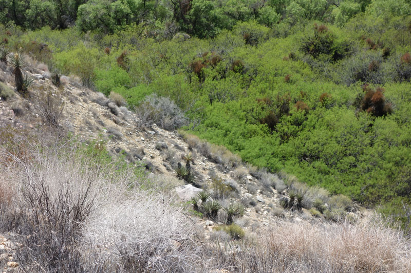 On previous trips in the area I never tried to descend into the canyon for water. The canyon is so overgrown with trees and brush, that getting to water would be quite the task.