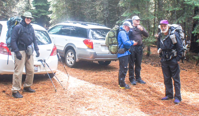 Four people who have backpacked together: Doug, Katharina (Kat), Ken, and Peter invited me to join them on a trip in Northern California’s Trinity Alps. Doug and I met a few years ago for dinner on the East coast. Kat, Ken, and Peter were Internet acquaintances of mine. After this trip, I now consider all of them friends. What is interesting and important to me is all of them are very much the same people in person as they are online.
