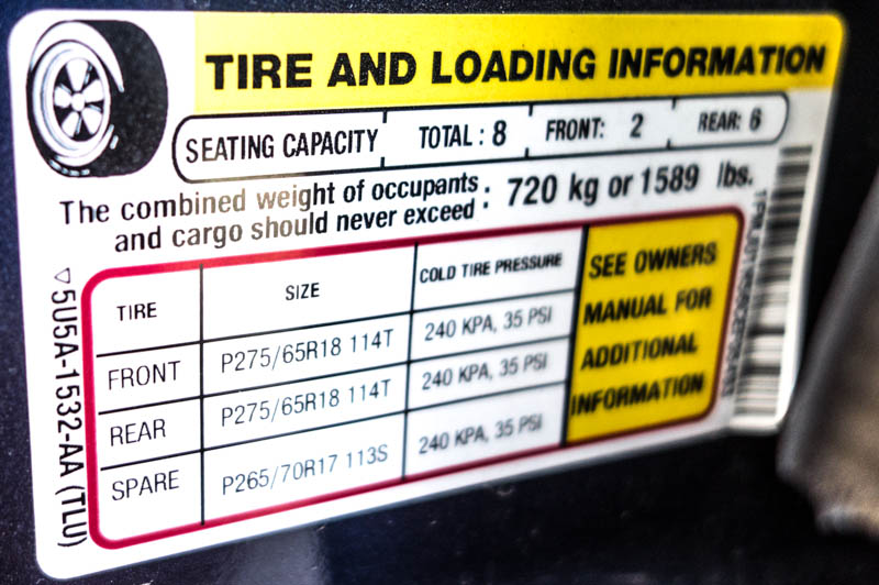 So all the information you need is on the vehicle itself. For our Expedition, here are the specifications:
