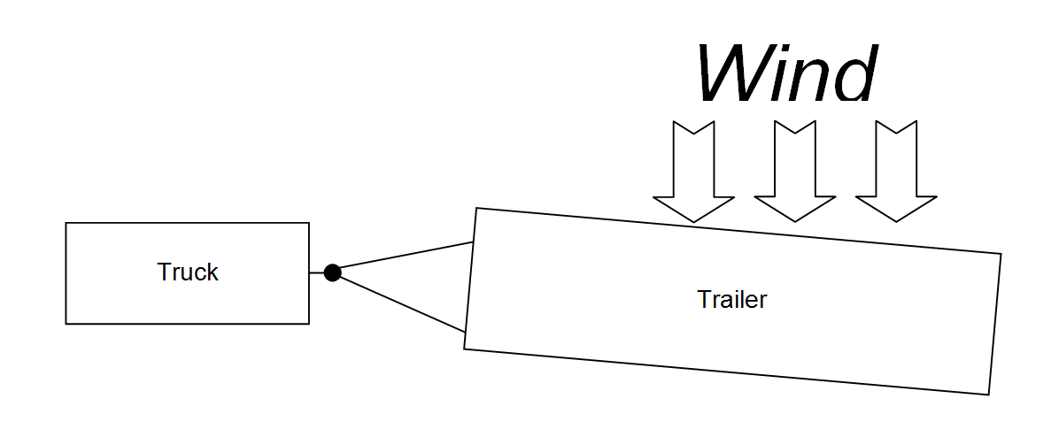One last subject I should discuss is trailer sway. Because a trailer is connected to a pivot point behind the tow vehicle, it is subject to the force of the wind or even passing semi-trucks. These forces push or pull the trailer from side to side, requiring the driver to constantly adjust to keep the trailer straight. Too light or too heavy a tongue weight can exaggerate the problem.
