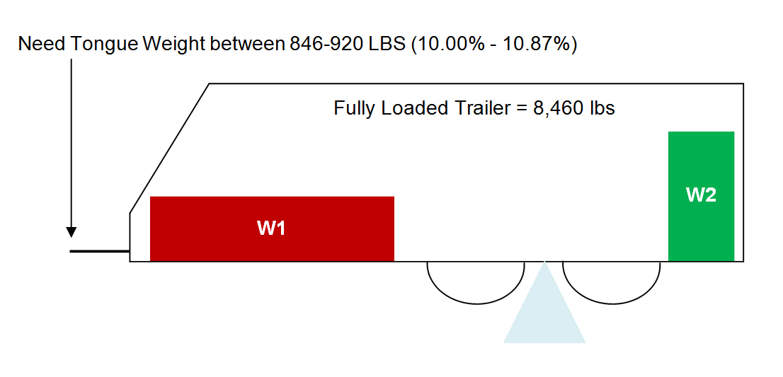 Our tongue weight was 900 lbs, just under the maximum of 920 lbs. With a total trailer weight of 8,460 lbs, we had a tongue weight of 10.6%. Everything was in specs, but the tongue weight was a too close for comfort for me. In addition, we were getting some trailer sway when semi-trucks passed us at high speeds.