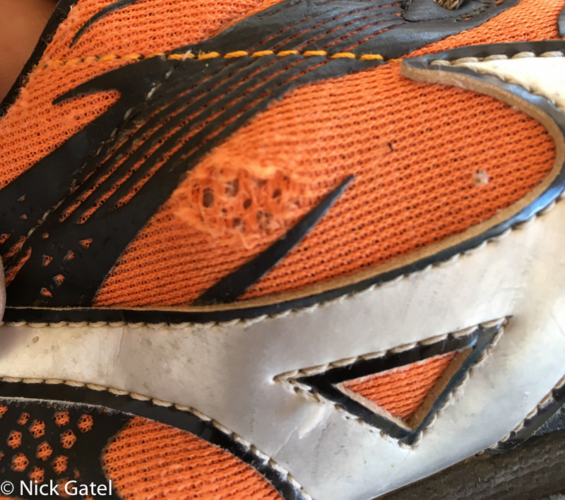 However, my Mizuno shoes do get upper wear from abrasion and minor tears from sharp objects like rocks and cacti as the pictures below document.