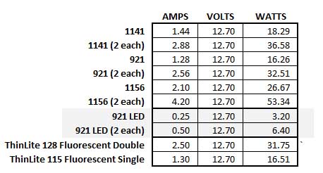 Since LED light technology was still not where I wanted it to be, we ended up adding five ThinLite Fixtures with a total draw of 11.3 amps.