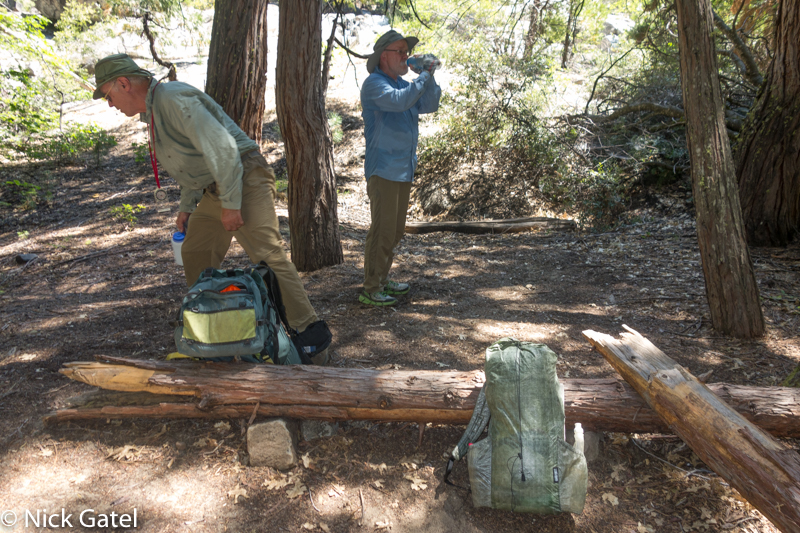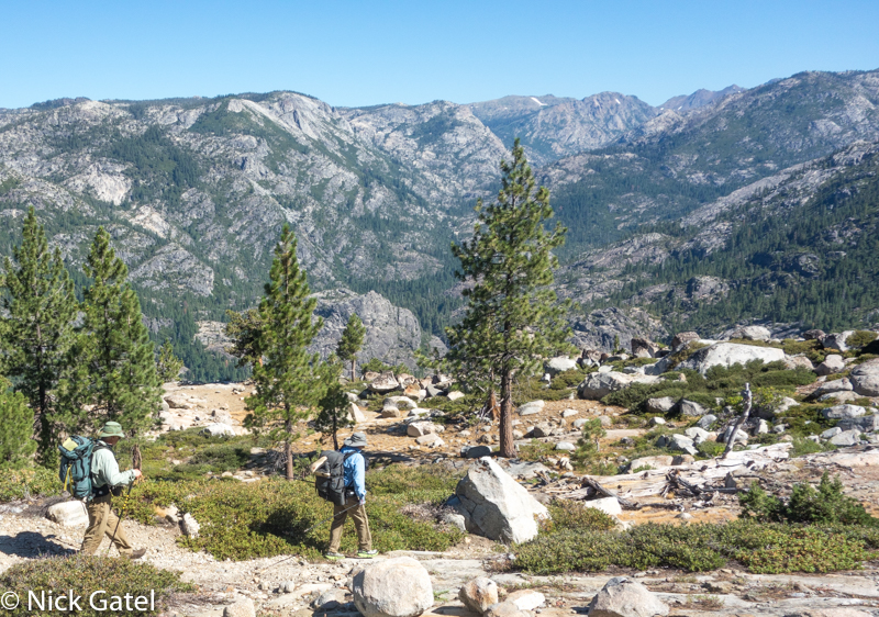 Our plan was to hike to the bottom of a huge canyon where the North Fork of the Mokelumne lives. Rarely visited, we saw no one else on the trail. This also meant the trail was old, not maintained, and at times a gauntlet of blow-downs and brush. And with trails like this, the trail just disappears at times. Not difficult navigation, but there is pause at times to figure out where the trail is.
