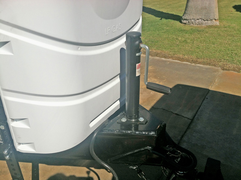Like most trailers, ours came with a hand crank tongue jack. Based on past experience, I didn’t bother using it even once. Before we even purchased our Milan, I had bought an electric tongue jack – The Ultra-Fab Products, Odyssey 4000.