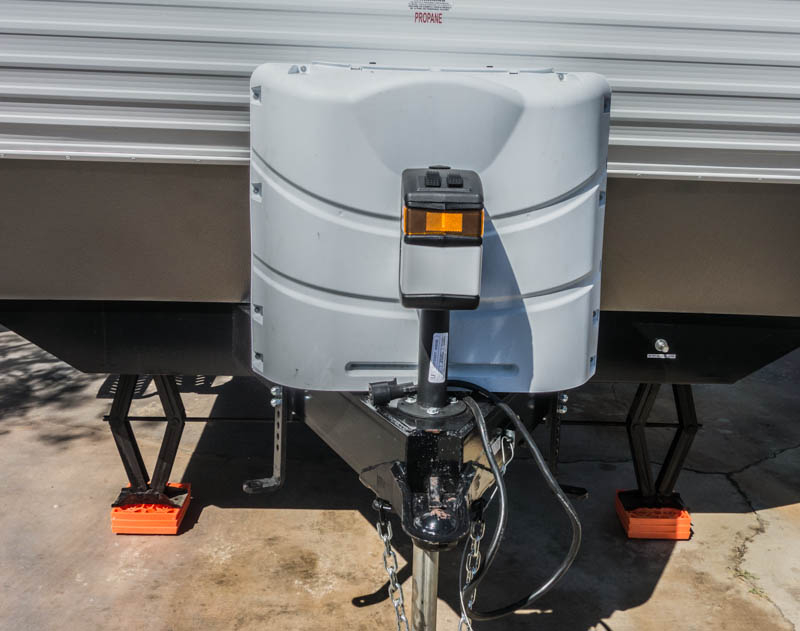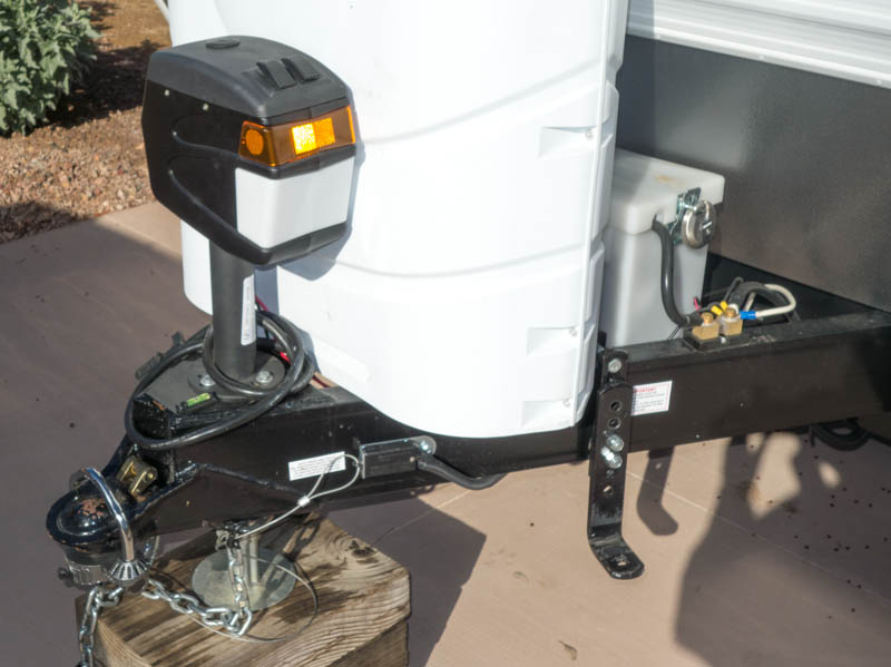 It took about 60 seconds to remove the 3 bolts, turn is sideways, and tighten everything up. Now the door opened all the way. The jack has a built-in light to help hitching duties in the dark, which it isn’t especially bright but it works. I don’t how many times we have used the jack, it’s a lot, and it is as smooth as it was out of the box.