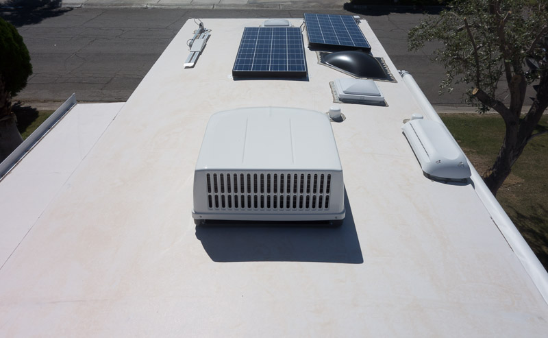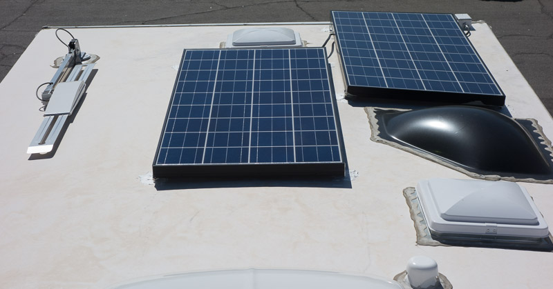 As with our last camper, the very first mod we did to our Milan was to install a solar system. You may also want to read about the solar systems on our 1992 Starcraft Meteorite and 2006 Fleetwood Niagara.