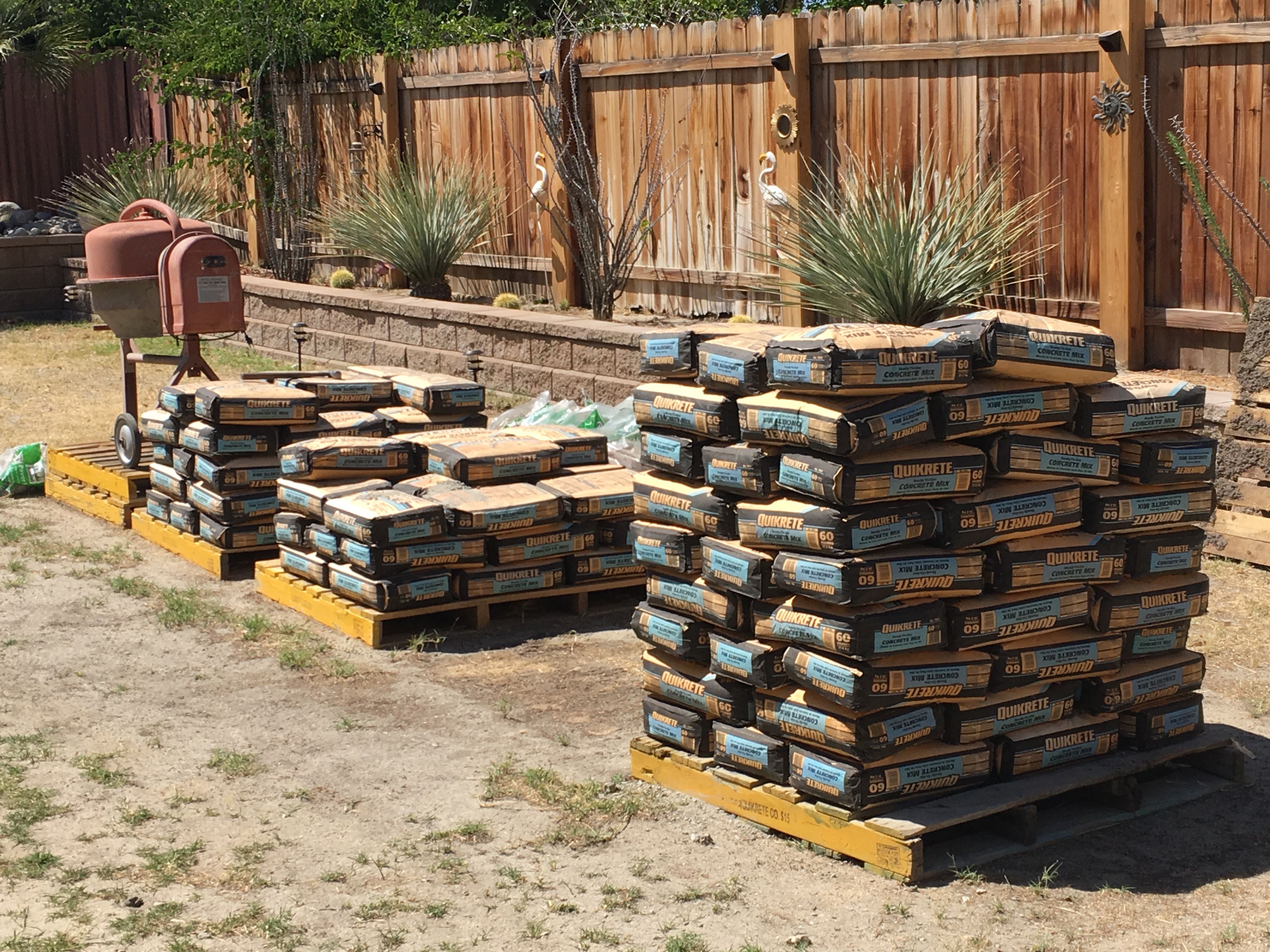 My cement mixer isn’t tall enough to off-load the cement into a wheelbarrow. Placing it on a couple of cement pallets fixed that deficiency.