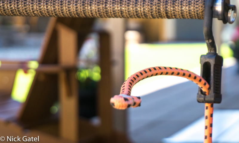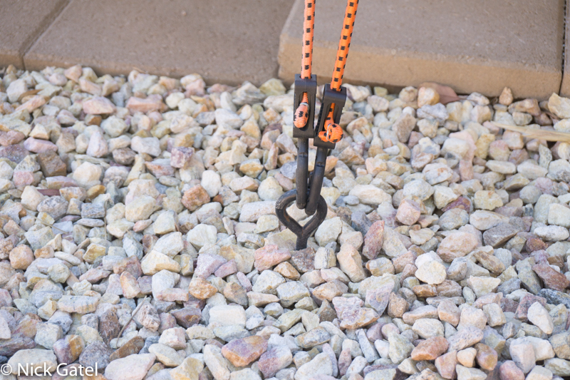 To secure the shades against wind I installed 15” anchor pegs and used heavy duty bungee cords to attach to the peg anchors. The bungee cords allow the shades to move with the wind without damage.